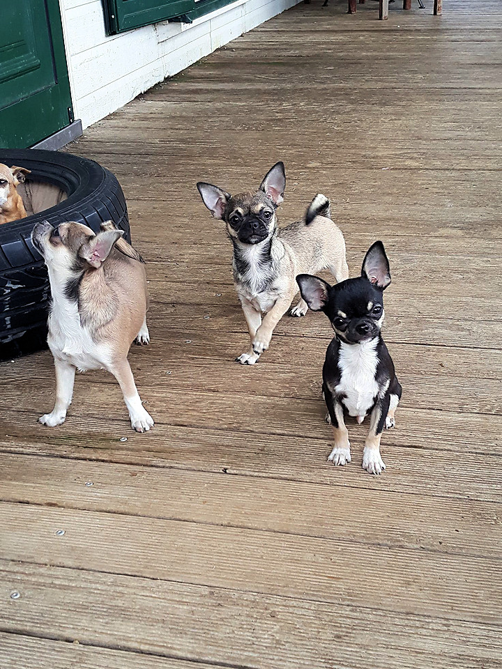 A raça Chihuahua, tem a particularidade de ser a raça mais pequena do mundo, é uma raça que duas variedades a de pêlo comprido e a pêlo curto e pese embora serem pequenos são uns valentões não olhando a tamanhos e super meigos com crianças e muito dependentes dos seus donos.